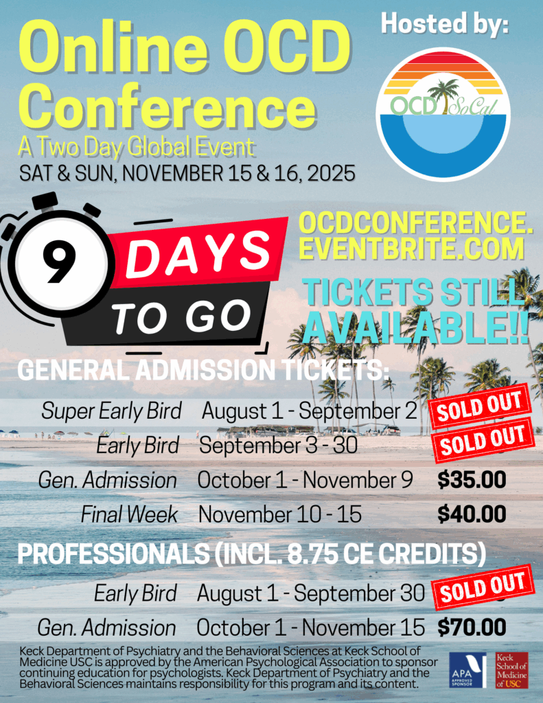 Join our support group this Saturday, November 8th from 11AM – 1 PM PST. Email: info@ocdsocal.org and request Saturday’s support group’s link! We meet virtually every second Saturday of the month.