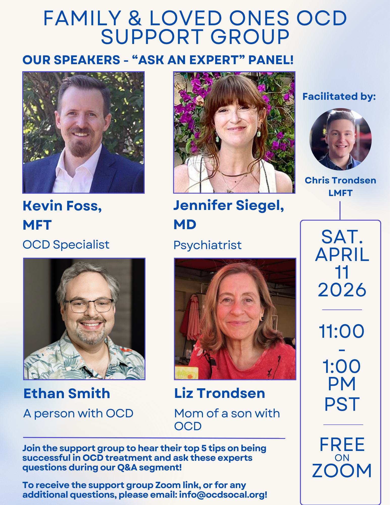 ZoomChris Trondsen, LMFT, a clinician with OCD, and his mom, Liz Trondsen, are excited to remind you about our April, virtual, free Family and Loved Ones OCD Support Group. It... Read more »