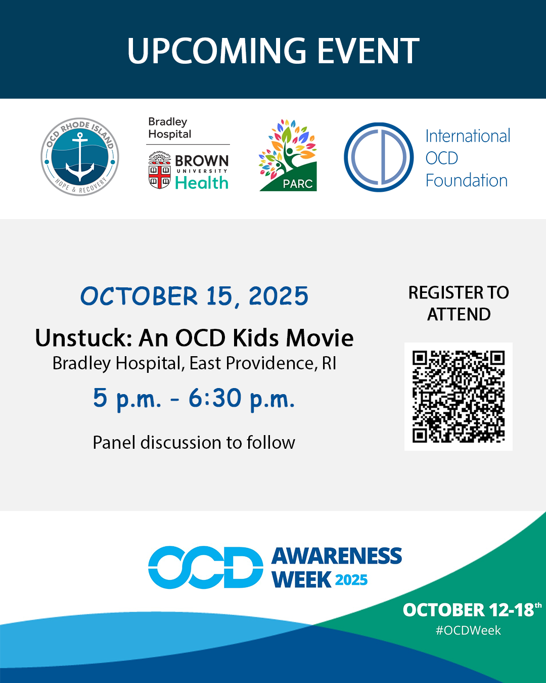 ![]() Join us for a screening of Unstuck: An OCD Kids Movie co-sponsored by OCD Rhode Island and the Pediatric Anxiety Research Center (PARC) at Bradley Hospital! *Panel discussion to follow Registration is required to attend this event. Please scan the QR code or click the link below to register. https://redcap.lifespan.org/redcap/surveys/?s=3WHCDNWDFNWH9P7N About UNSTUCK: an OCD kids... Read more »